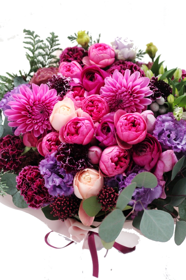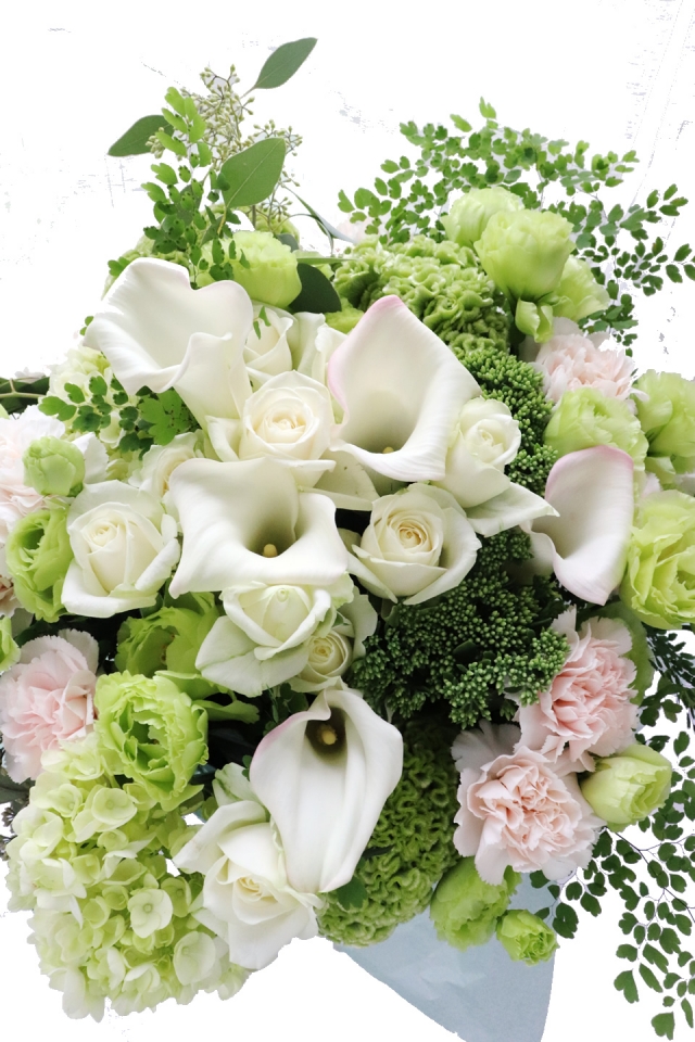 | 写真の使用花材 | 【写真左】 アマリリス、ダリア、アジサイ、カーネーション 【写真中】 グロリオサ、カーネーション、シンビジウム、アンスリューム 【写真右】 アジサイ、カラー、カーネーション、コデマリ |