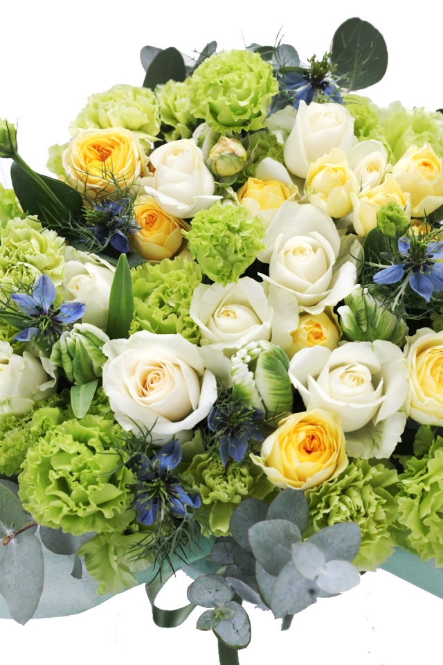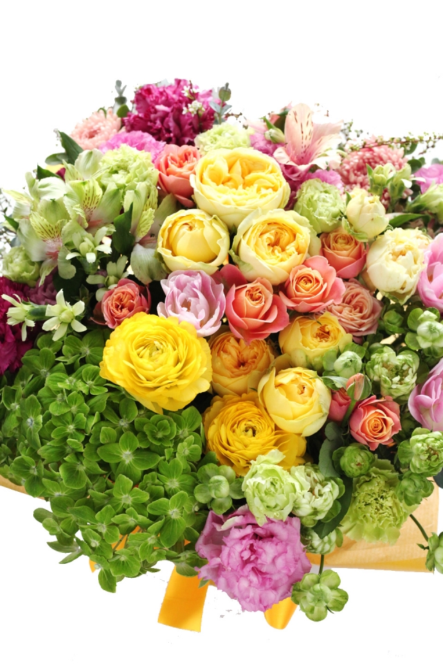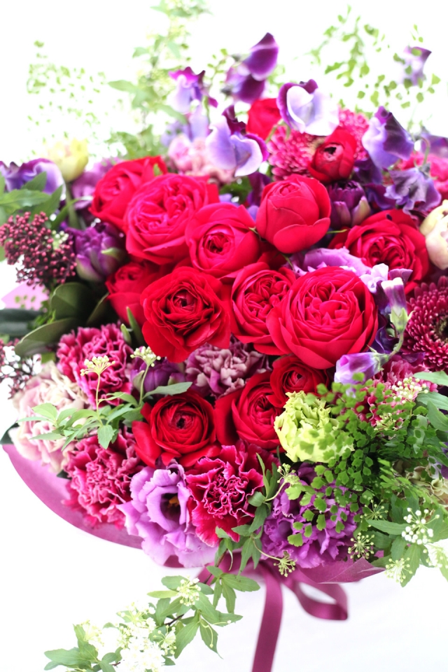 | 写真の使用花材 | 【写真左】 バラ、シンビジウム、アンスリューム、アランダ 【写真中】 カラー、バラ、シンビジウム、カーネーション 【写真右】 バラ、アジサイ、アンスリューム、アルストロメリア |