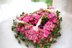 ピンクお花で作る、ハート型のアレンジは、鉄板といってもいいほど